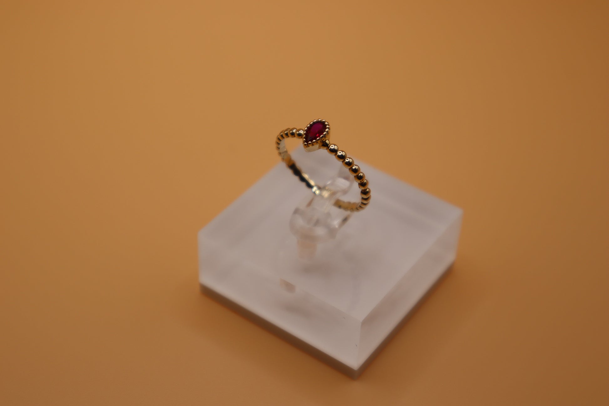 Anillo almendrado con piedra rosa en oro amarillo de 14k size 7