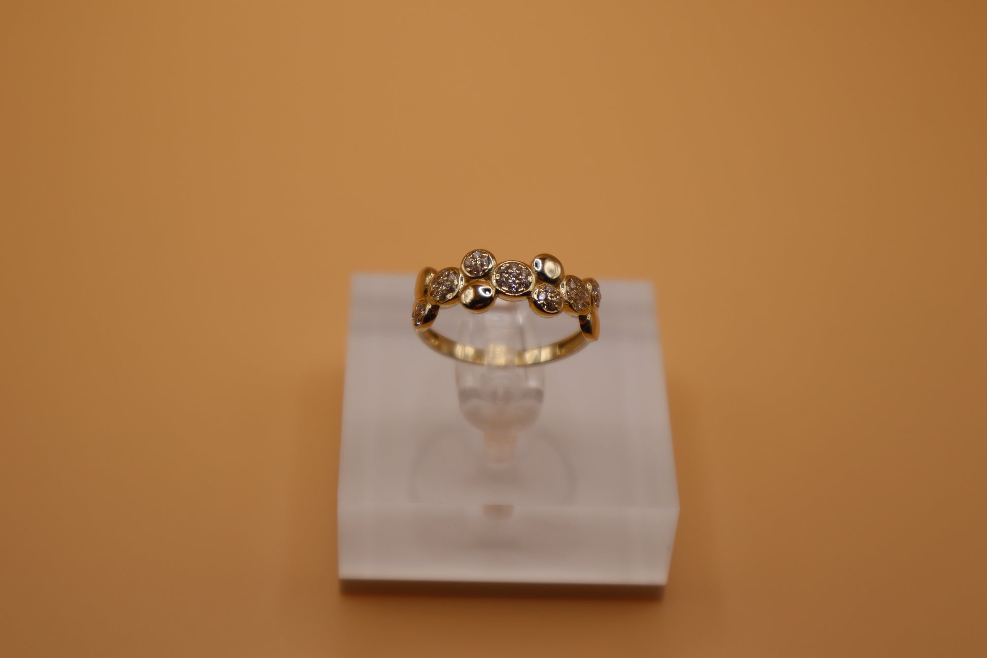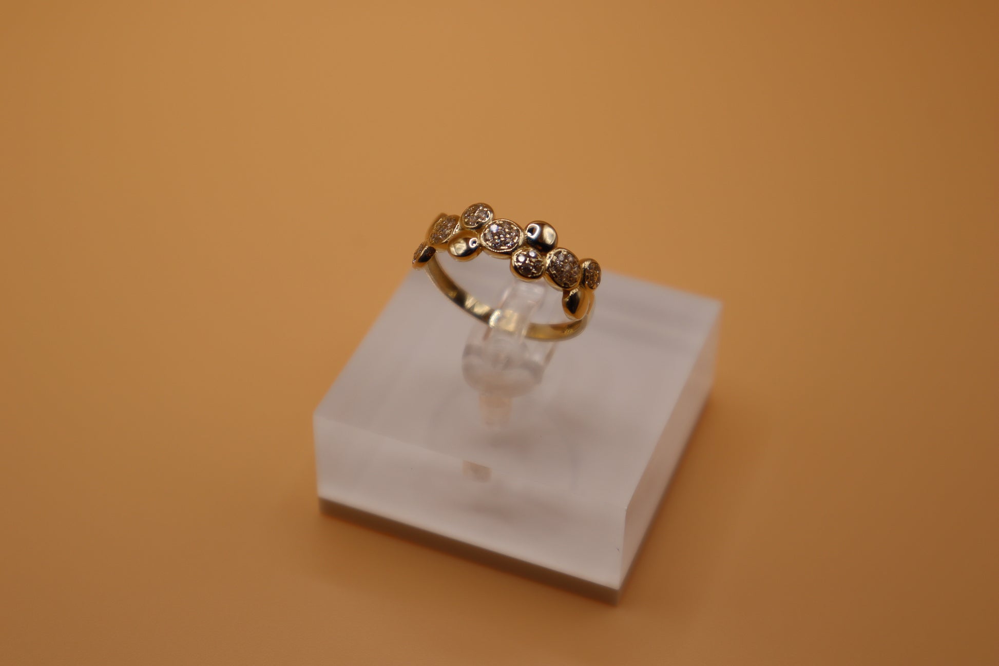 Anillo con diseño de círculos y zirconias en oro 14 k!!