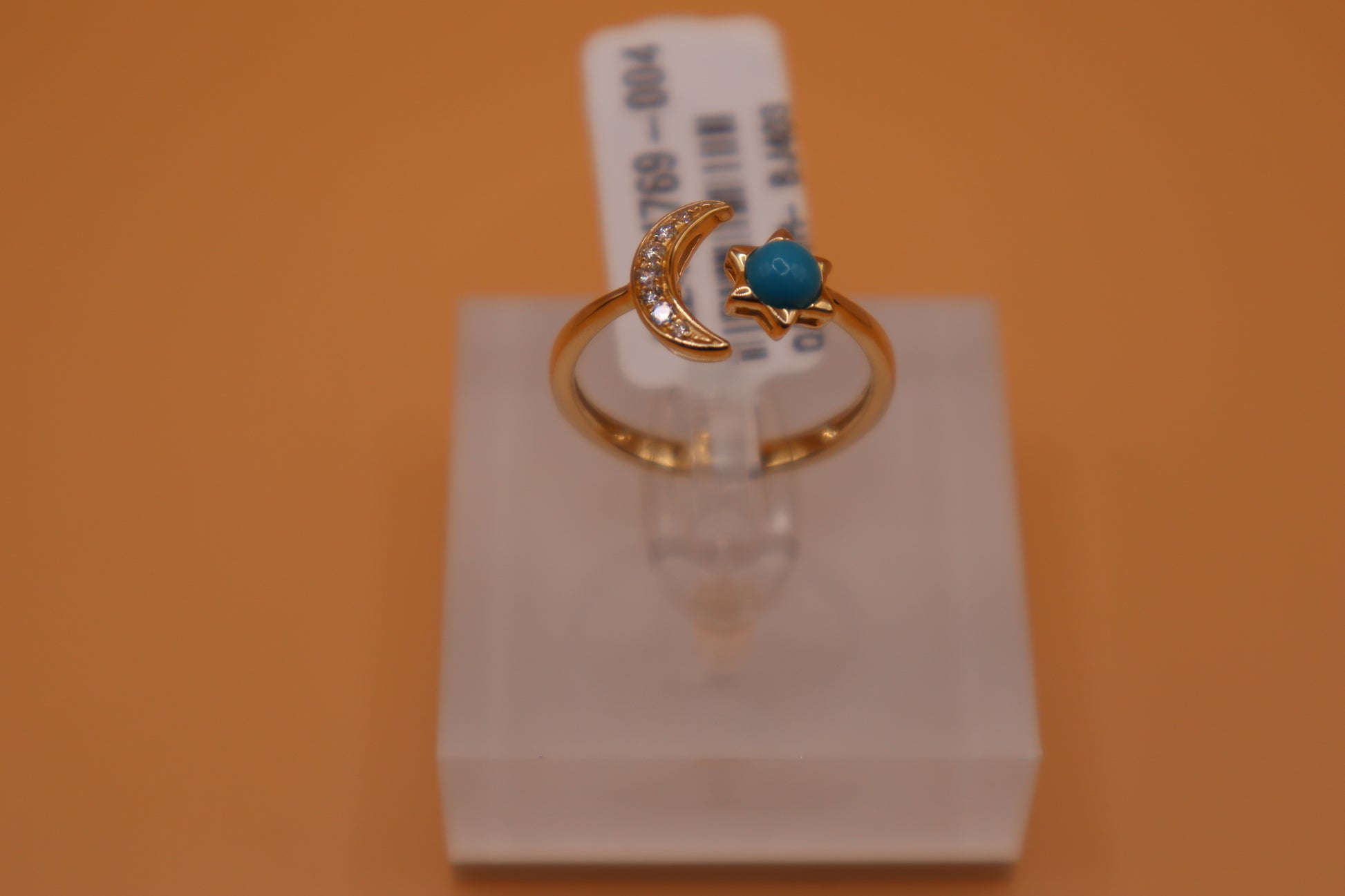 Anillo de diamante y piedra turquesa en oro amarillo de 14k!!