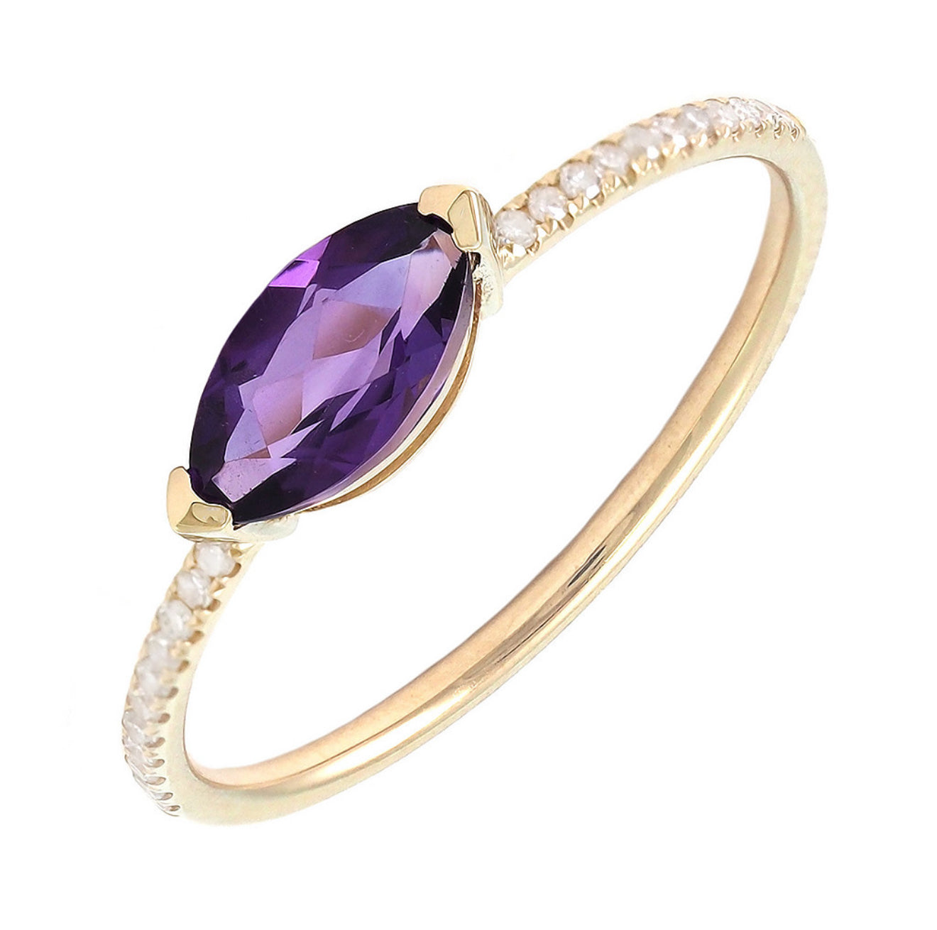 Anillo de diamantes naturales y piedra amatista en oro de 14 kt!!