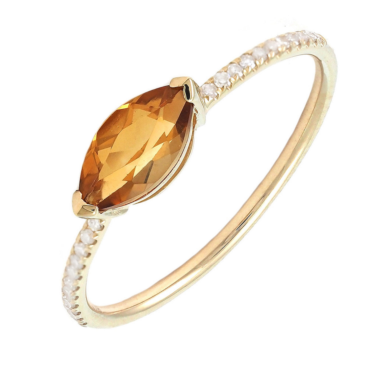 Anillo de diamantes naturales y piedra citrina en oro de 14 kt!!