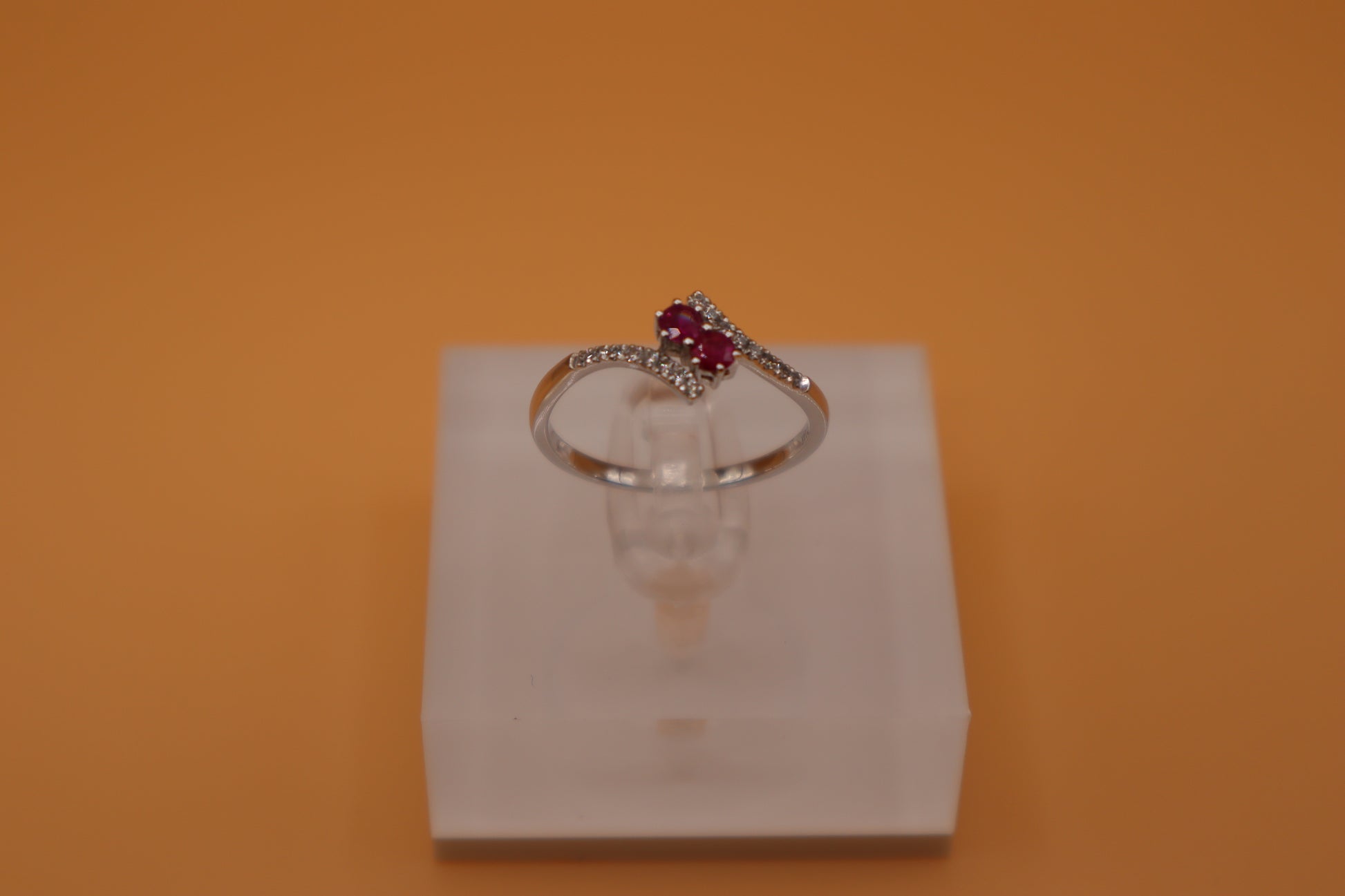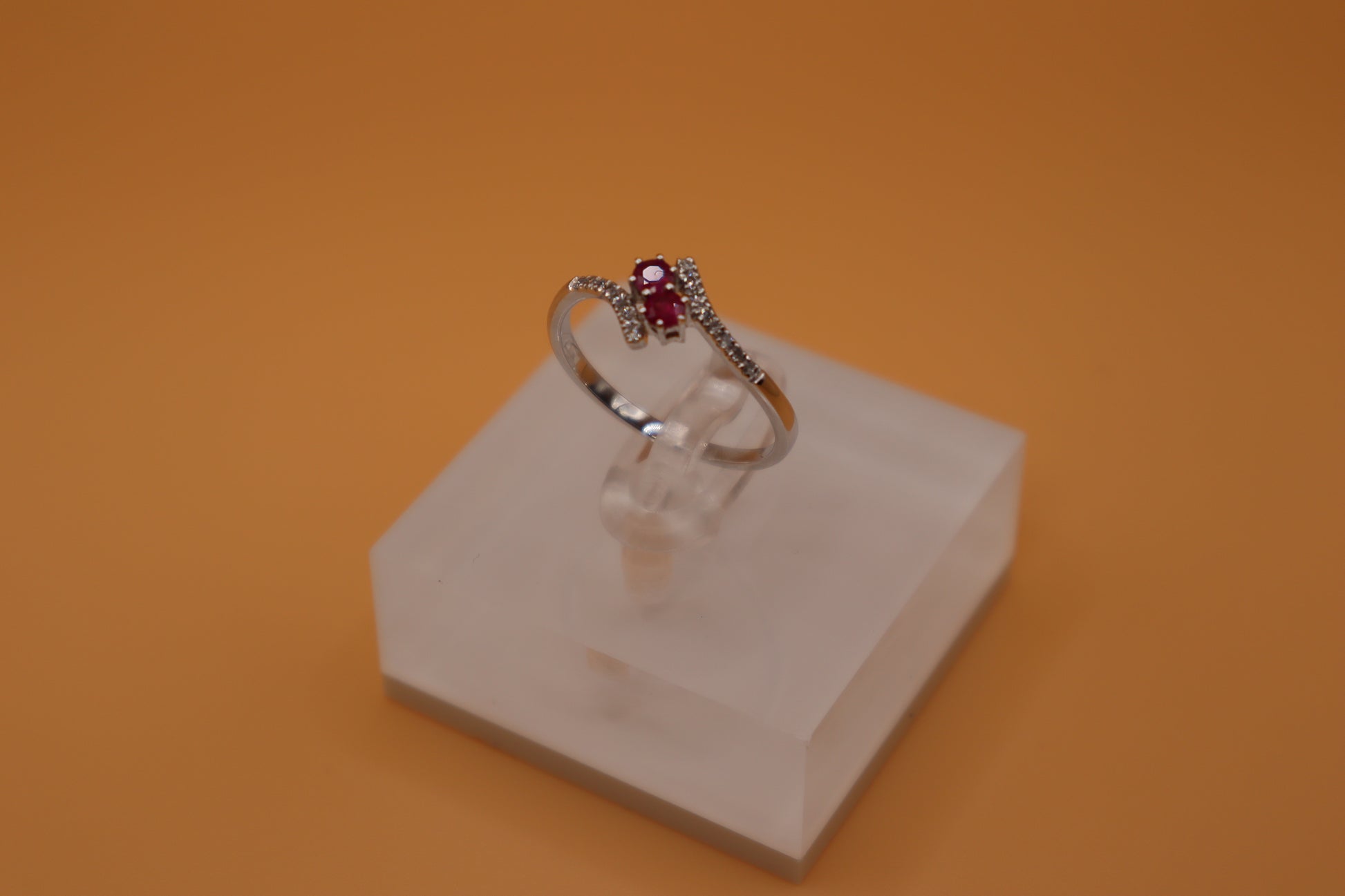 Anillo de diamantes y Rubí en oro blanco de 14k!!