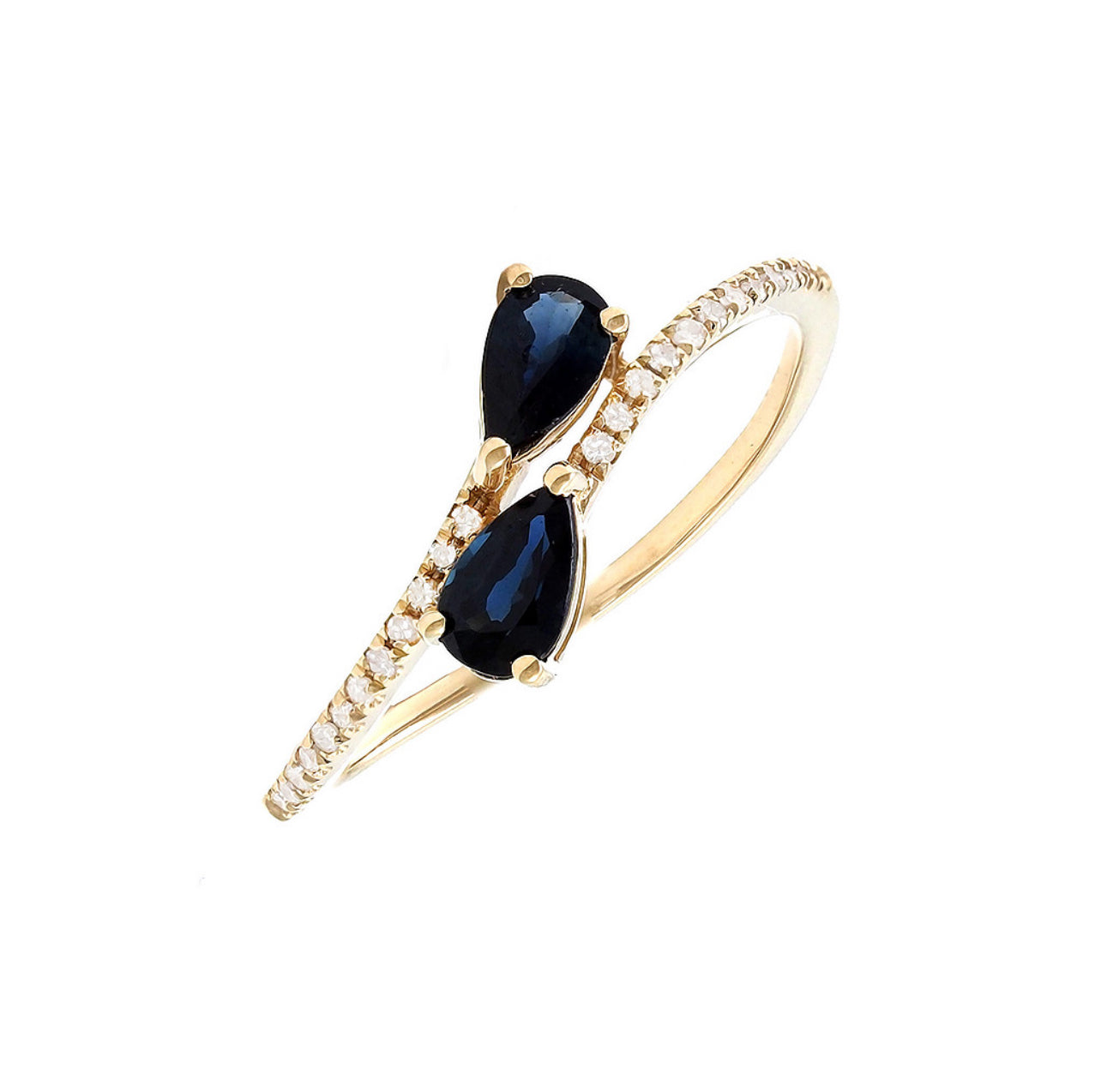 Anillo de diamantes y zafiro en oro amarillo de 14 kt!!