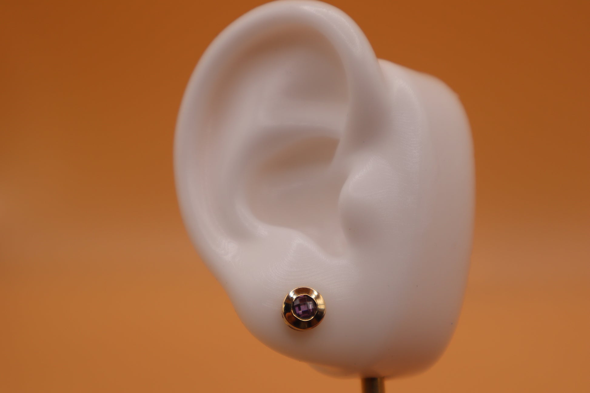 Arete redondo con circonia violeta en oro 14 k !!