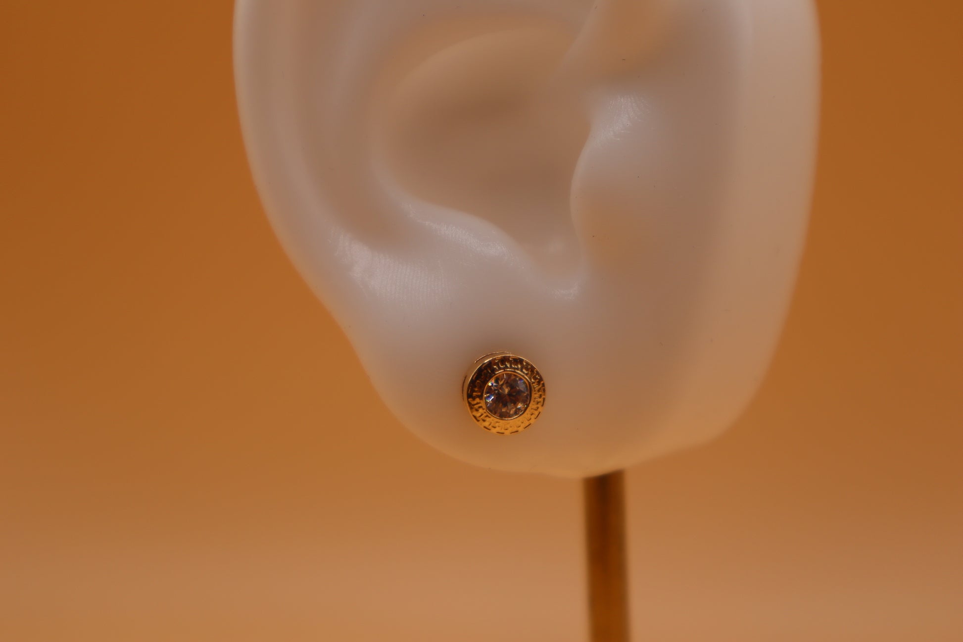 Arete redondo pegado y con piedra zirconia en oro 14 k !!