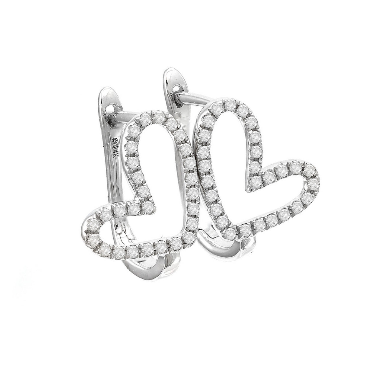 Aretes de corazón con diamantes en oro blanco de 14 kt!!