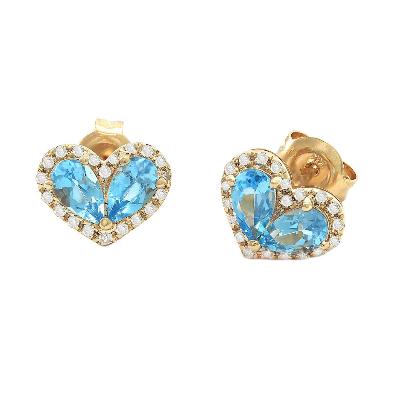 Aretes en forma de corazón con diamantes y topacio azul !!