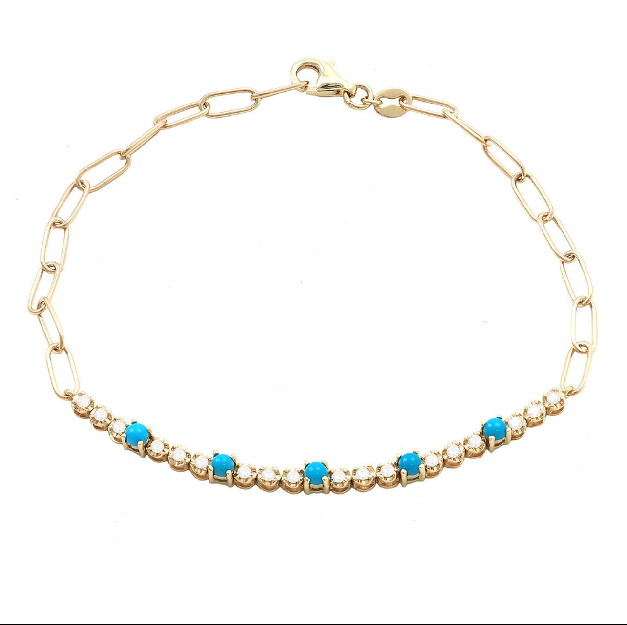 Brazalete de diamantes y turquesa en oro amarillo de 14 kt!!