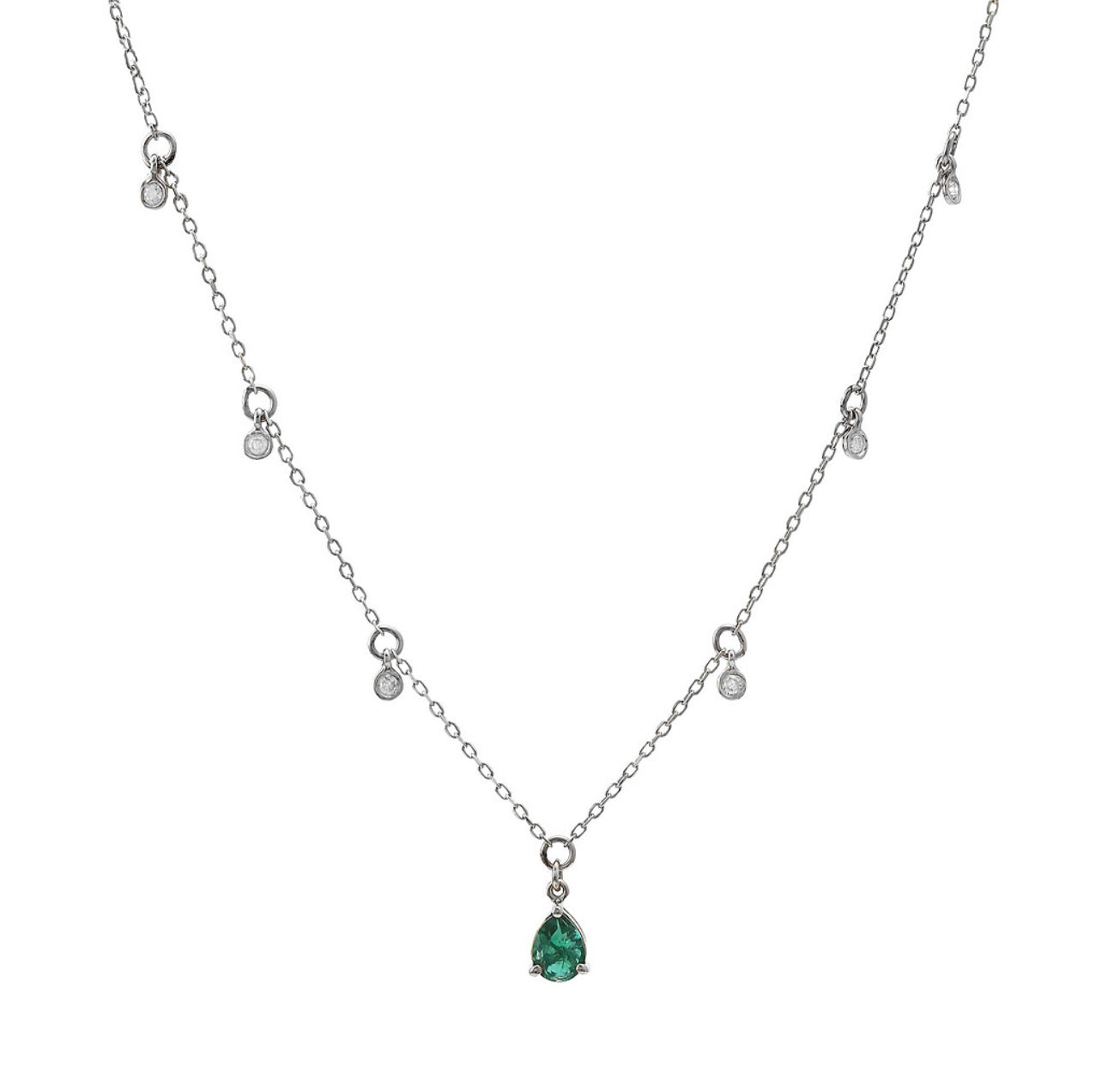 Cadena con diamantes y esmeralda en oro blanco de 14 kt !!