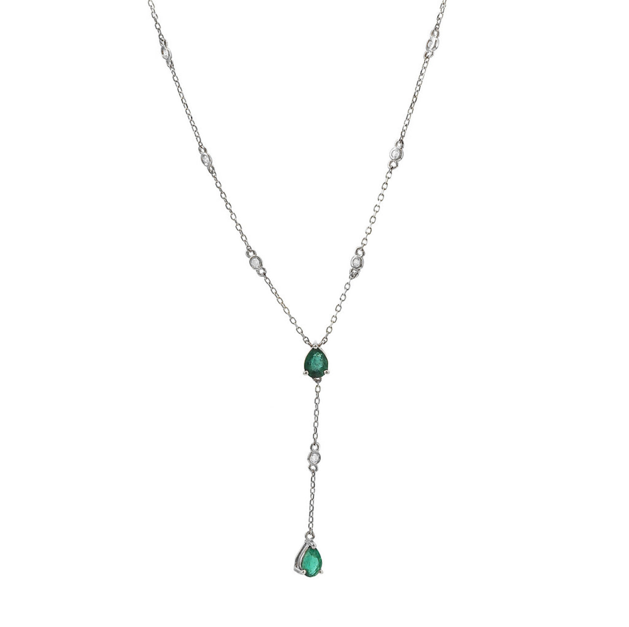 Cadena con diamantes y esmeralda en oro blanco de 14 kt!!
