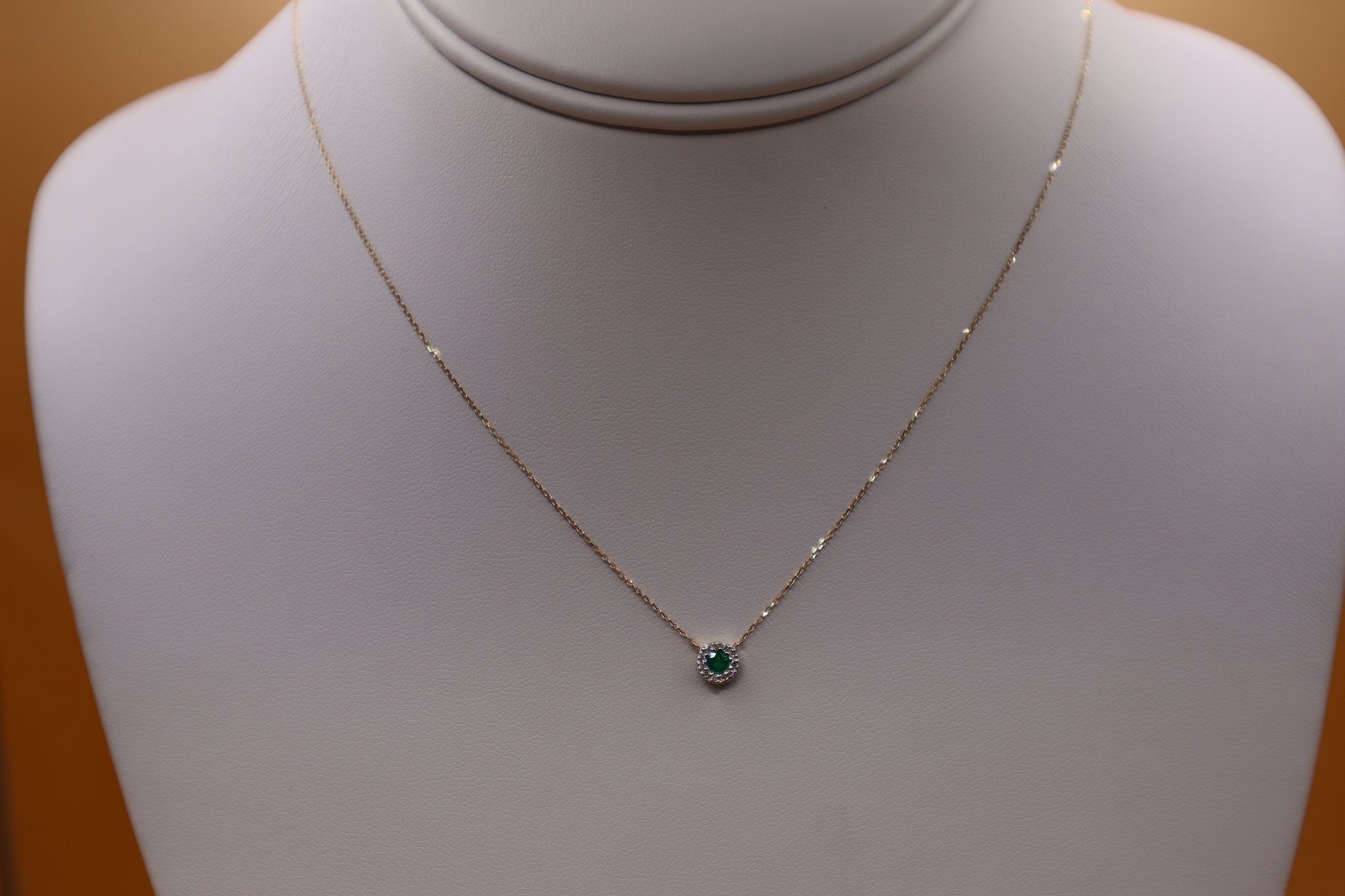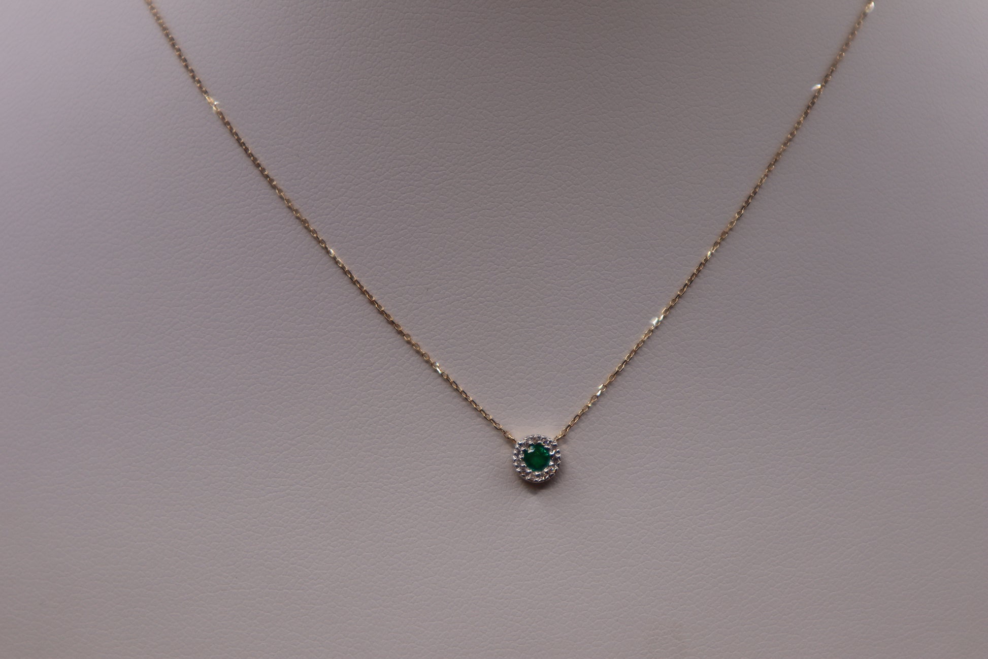 Cadena con punto de esmeralda y diamantes naturales en oro 14 k !!