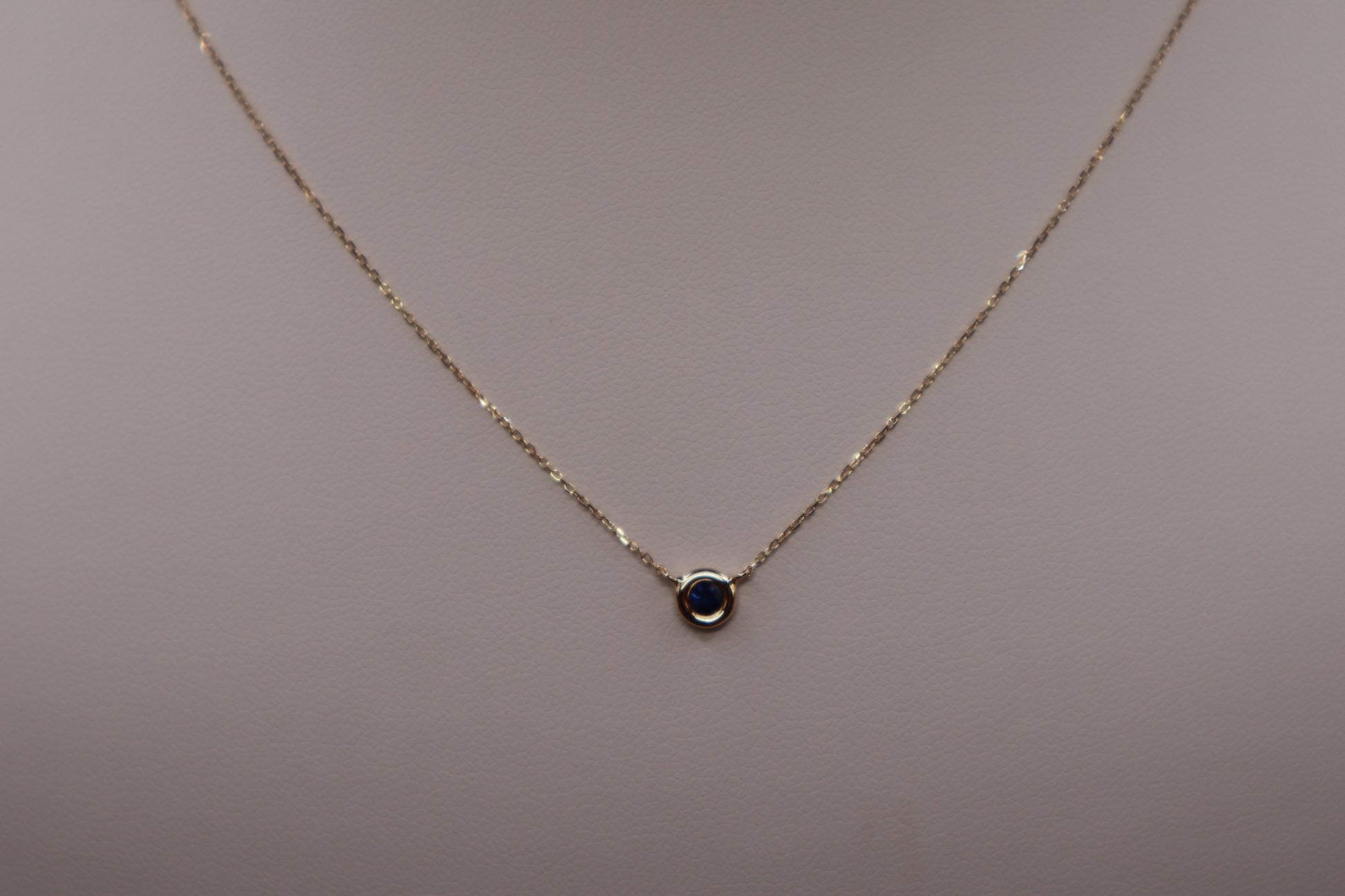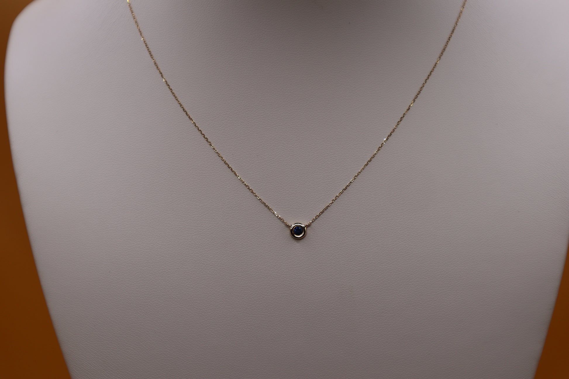 Cadena con punto de zafiro azul en oro amarillo de 14 k
