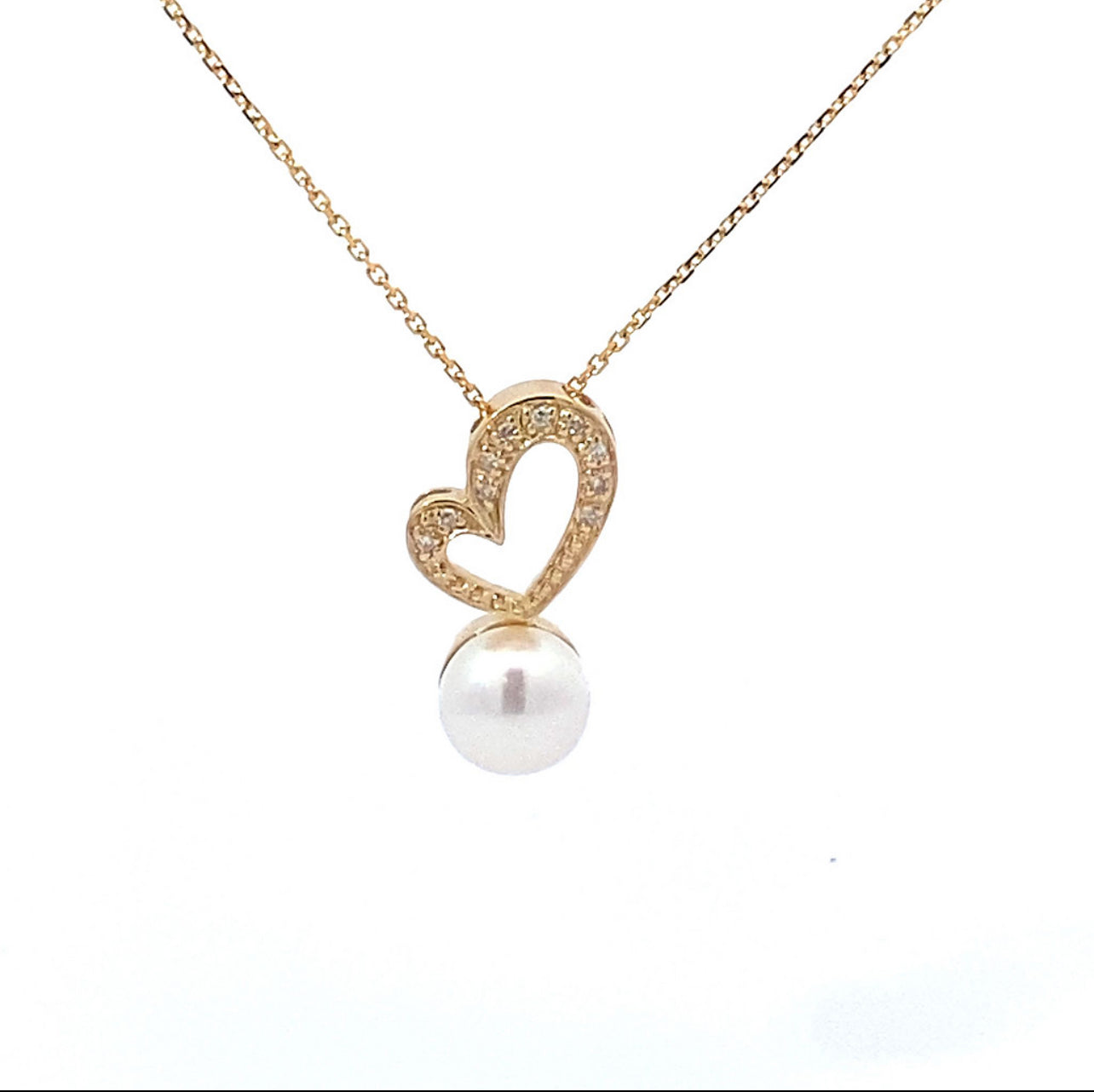 Cadena de corazón de diamantes y perla natural de rio en oro amarillo de 14 kt !!
