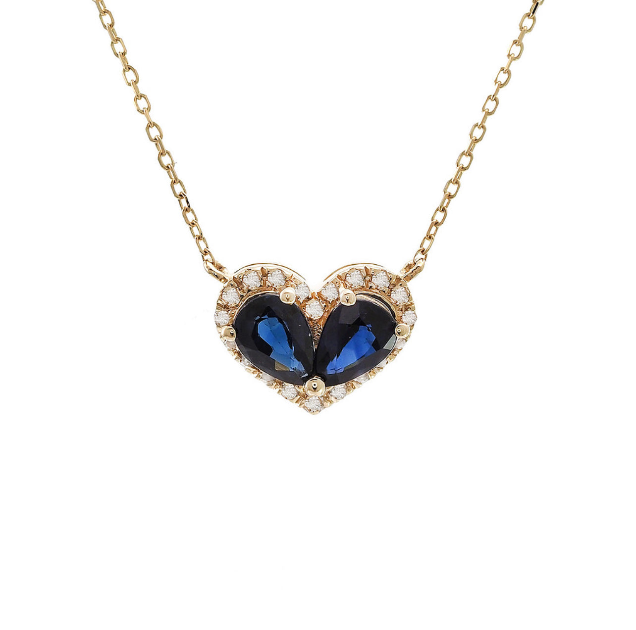 Cadena de diamante en forma de corazón y zafiro azul en oro de 14 kt!!