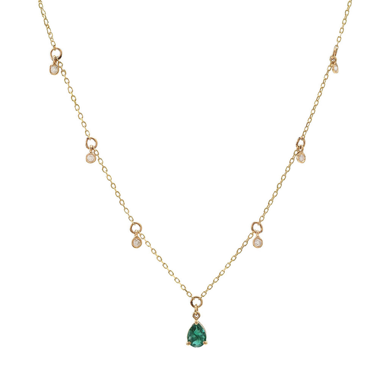 Cadena de diamantes y esmeralda en oro amarillo de 14kt!!