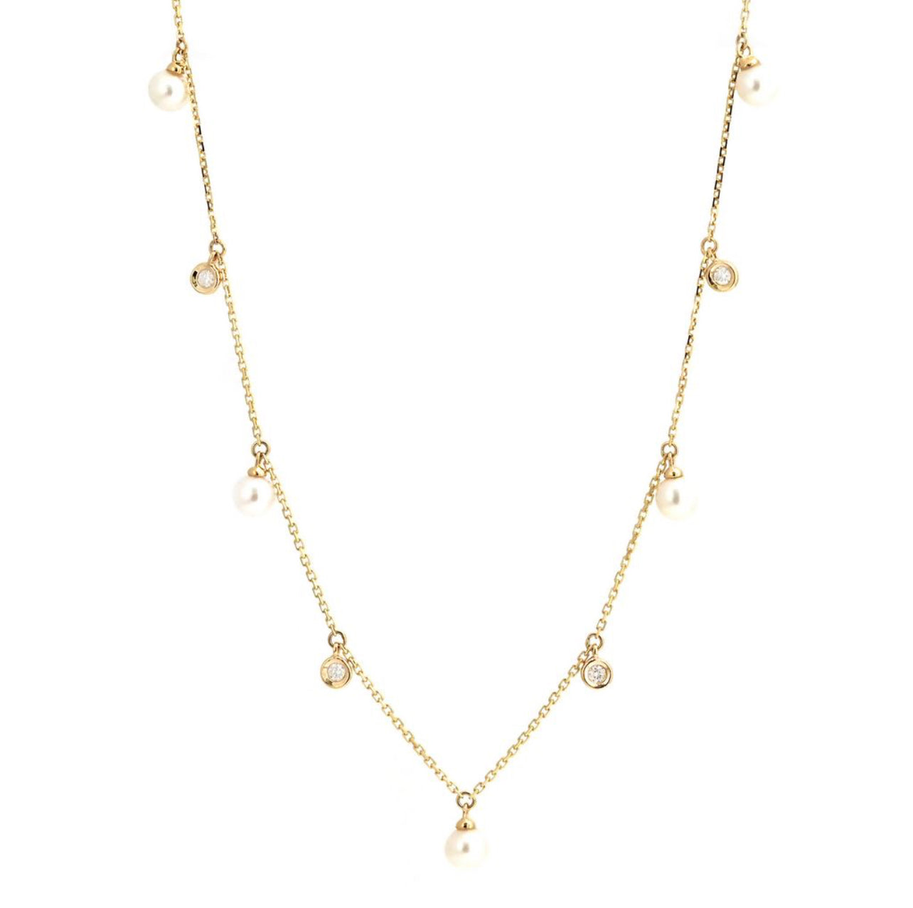 Cadena de diamantes y perlas naturales de rio en oro de 14 kt!!