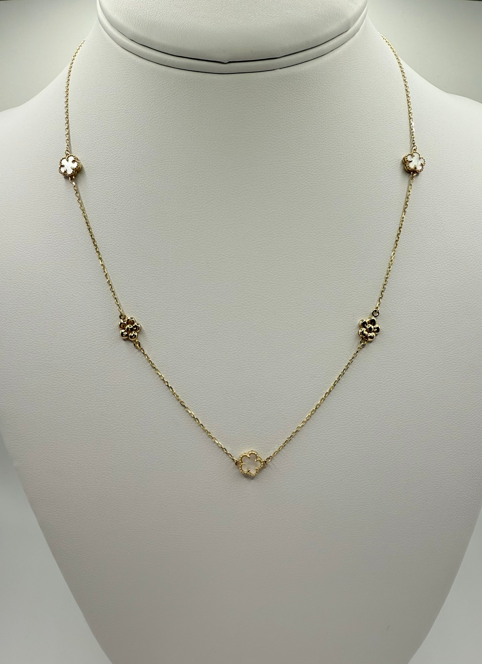 Cadena de flores blancas y doradas en oro de 14 kt!!