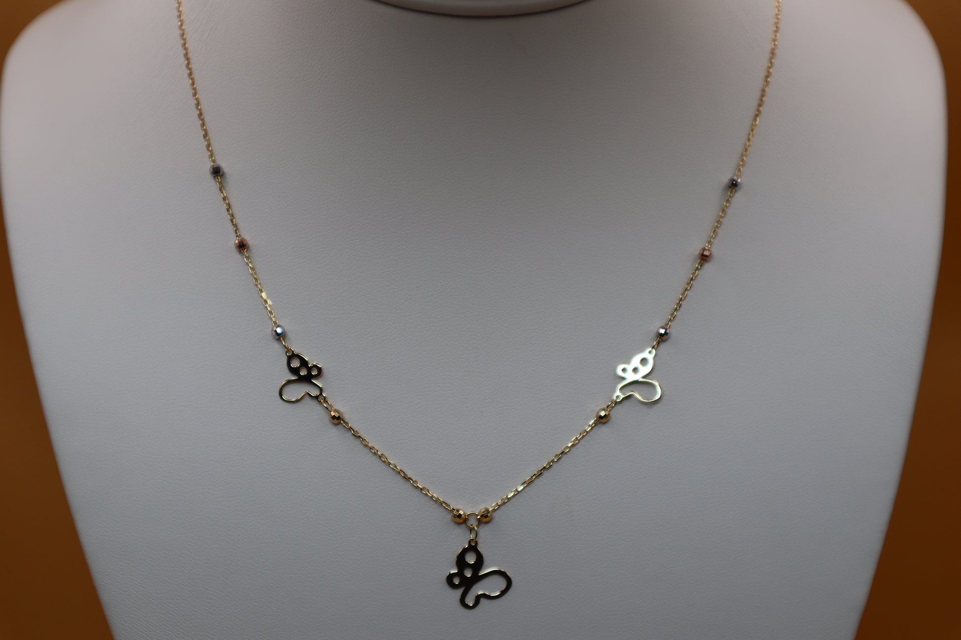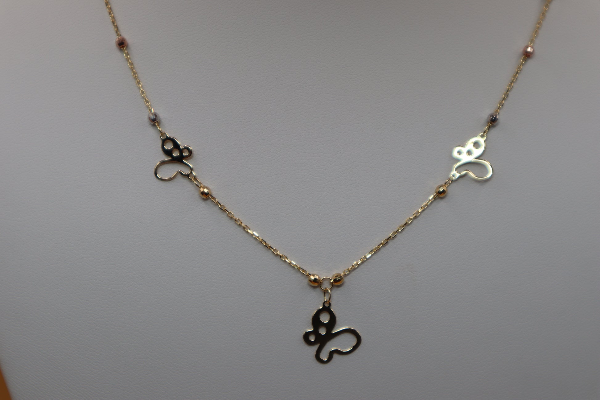 Cadena de mariposa con detalles en los tres oro en 14 k !!