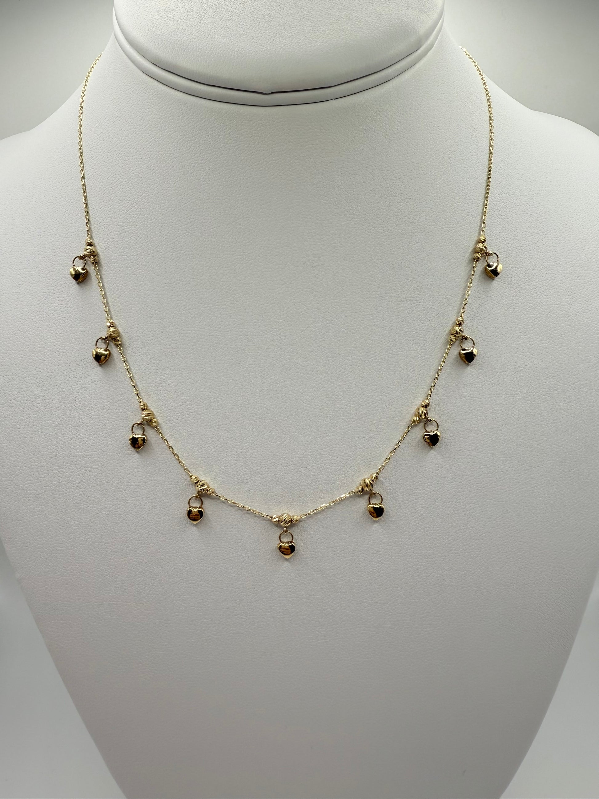 Cadena estilo gargantilla de corazones en oro de 14 kt!!