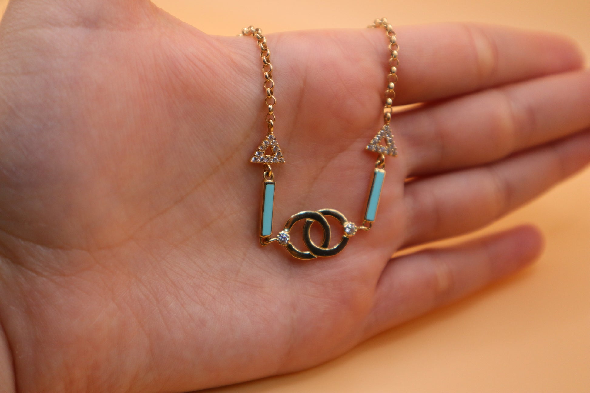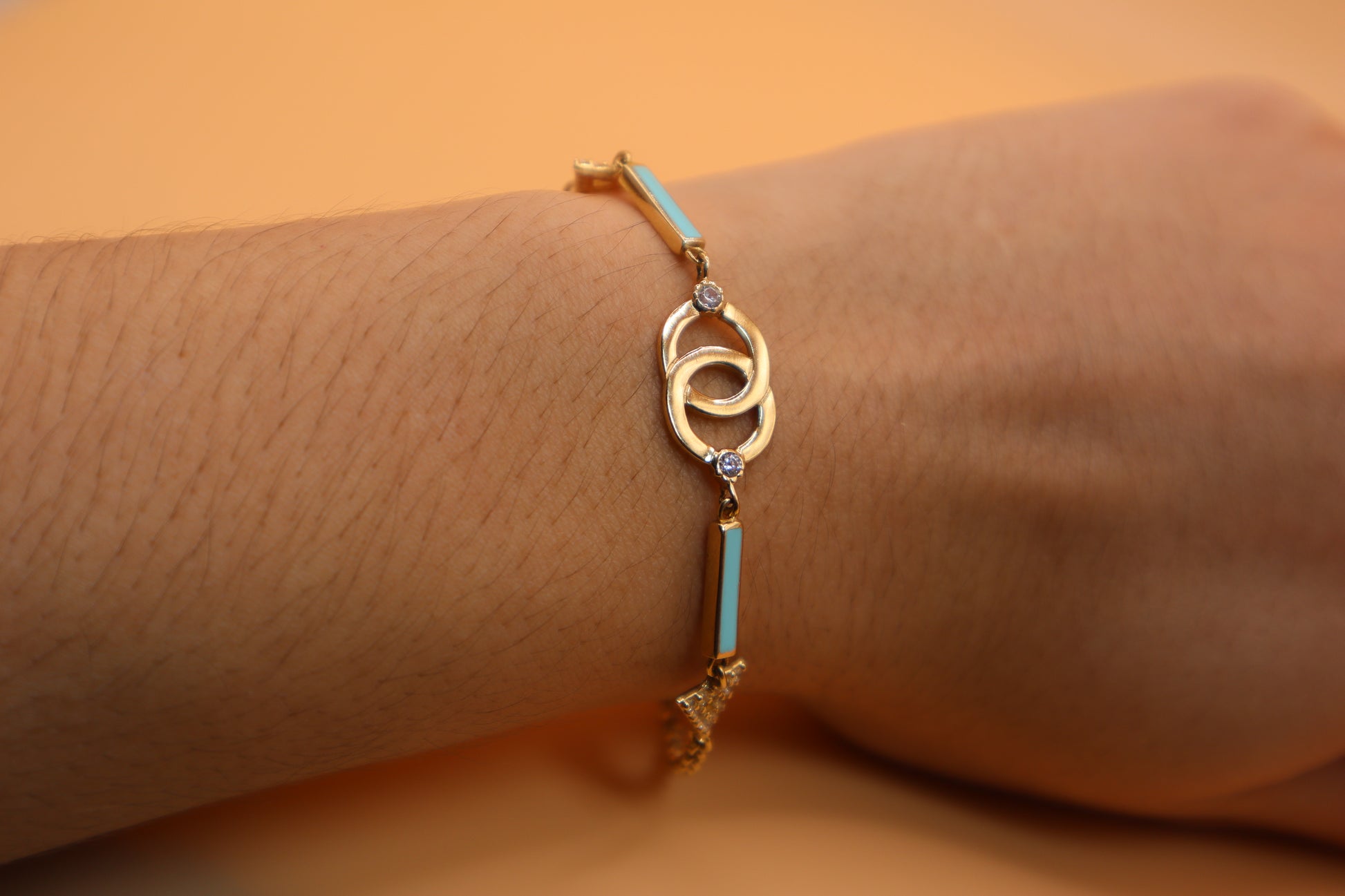 Pulsera rolo combinada con azul celeste 14k size 7-1/4