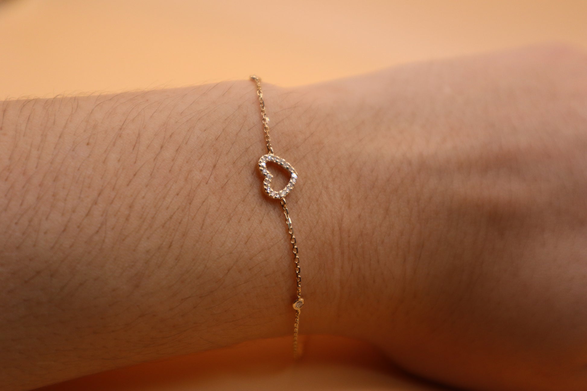 Pulsera de corazón con diamantes 14k