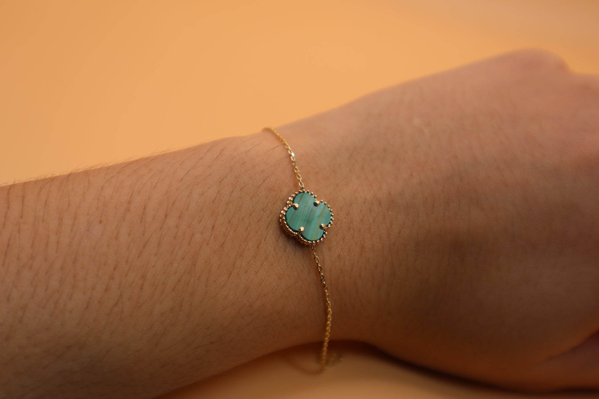 Pulsera de flor verde 14k Oro amarillo size 6-6.3/4
