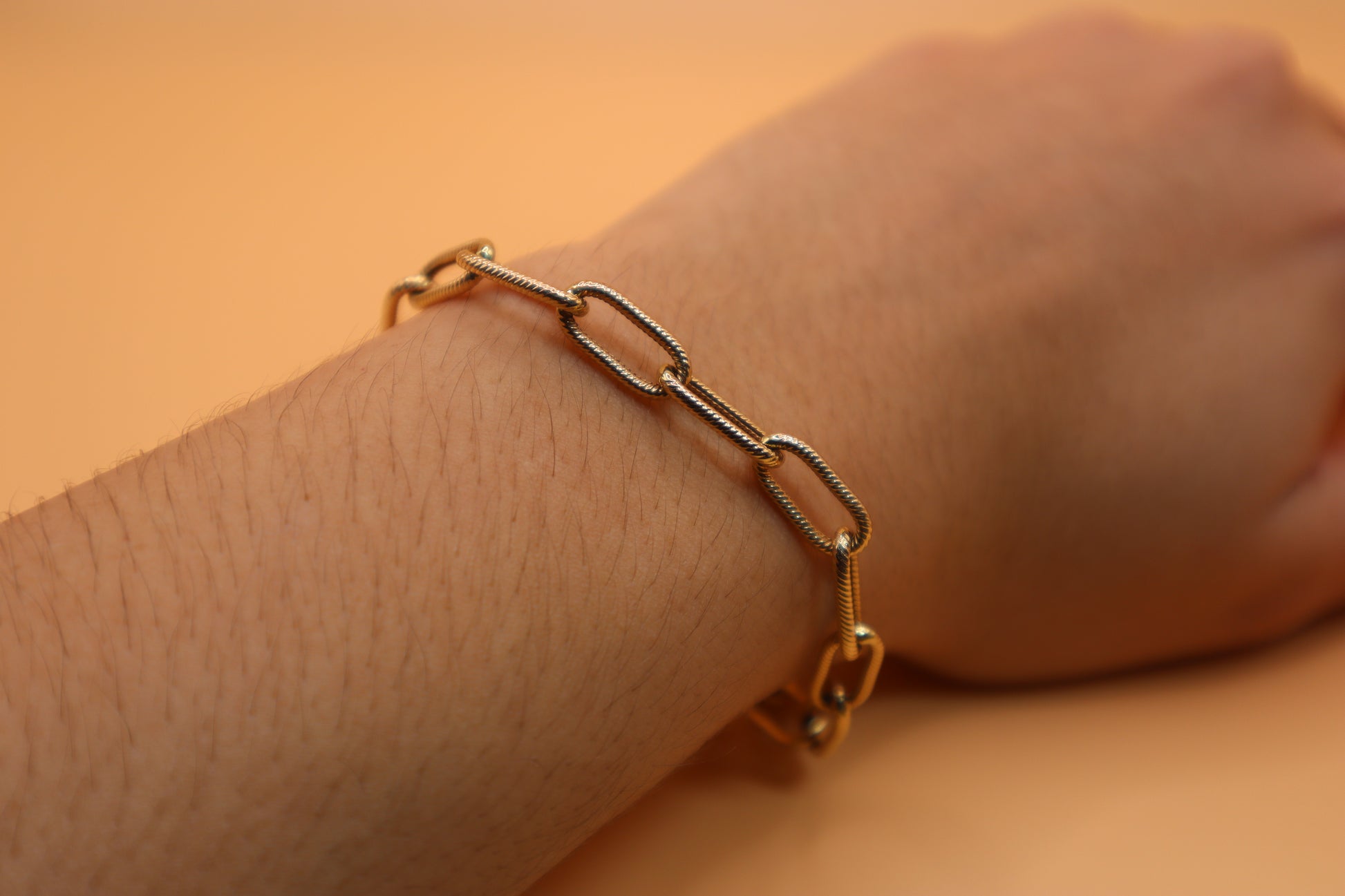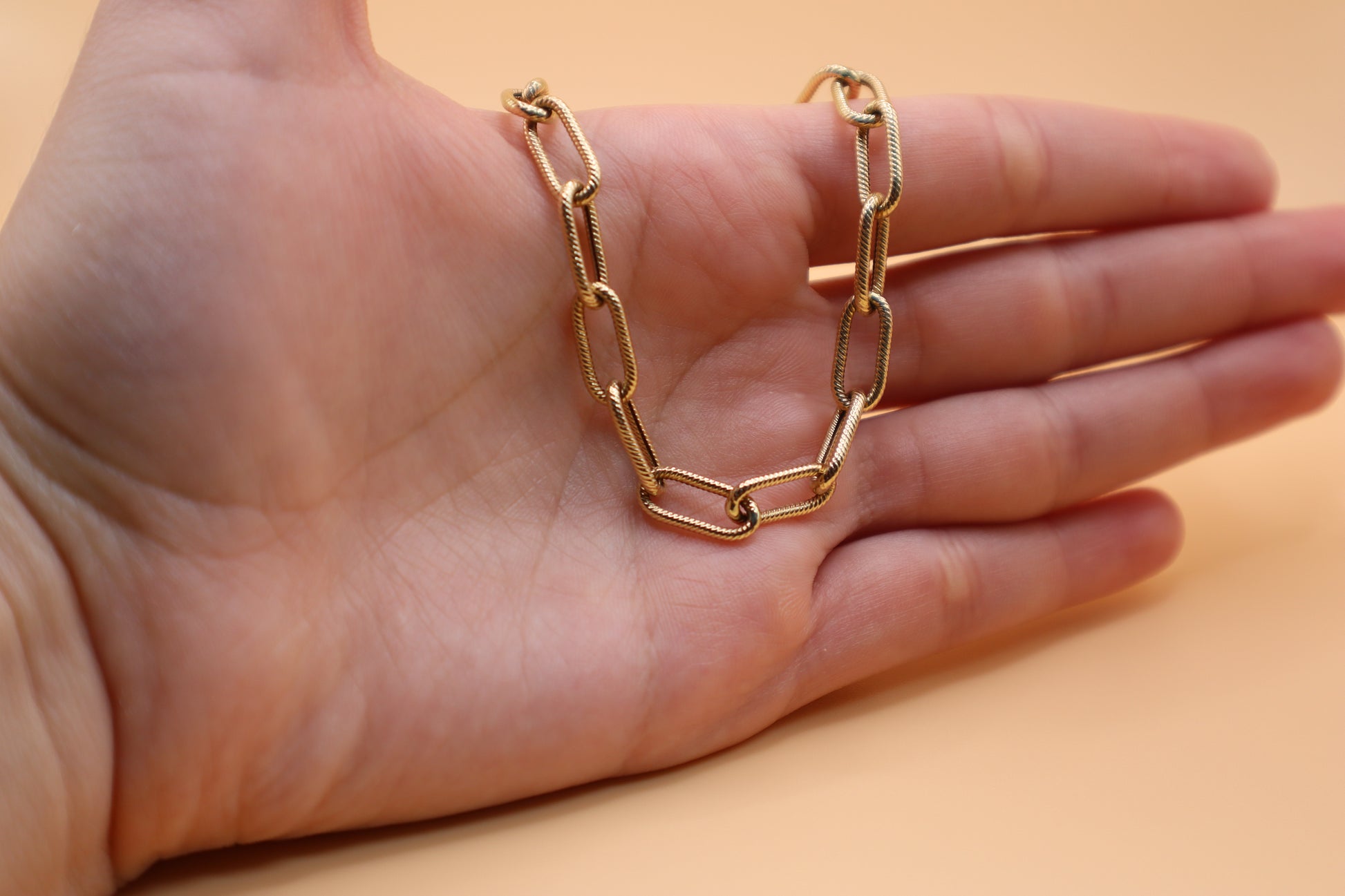 Pulsera paperclip con textura 14k Oro amarillo size 8 a 9.5