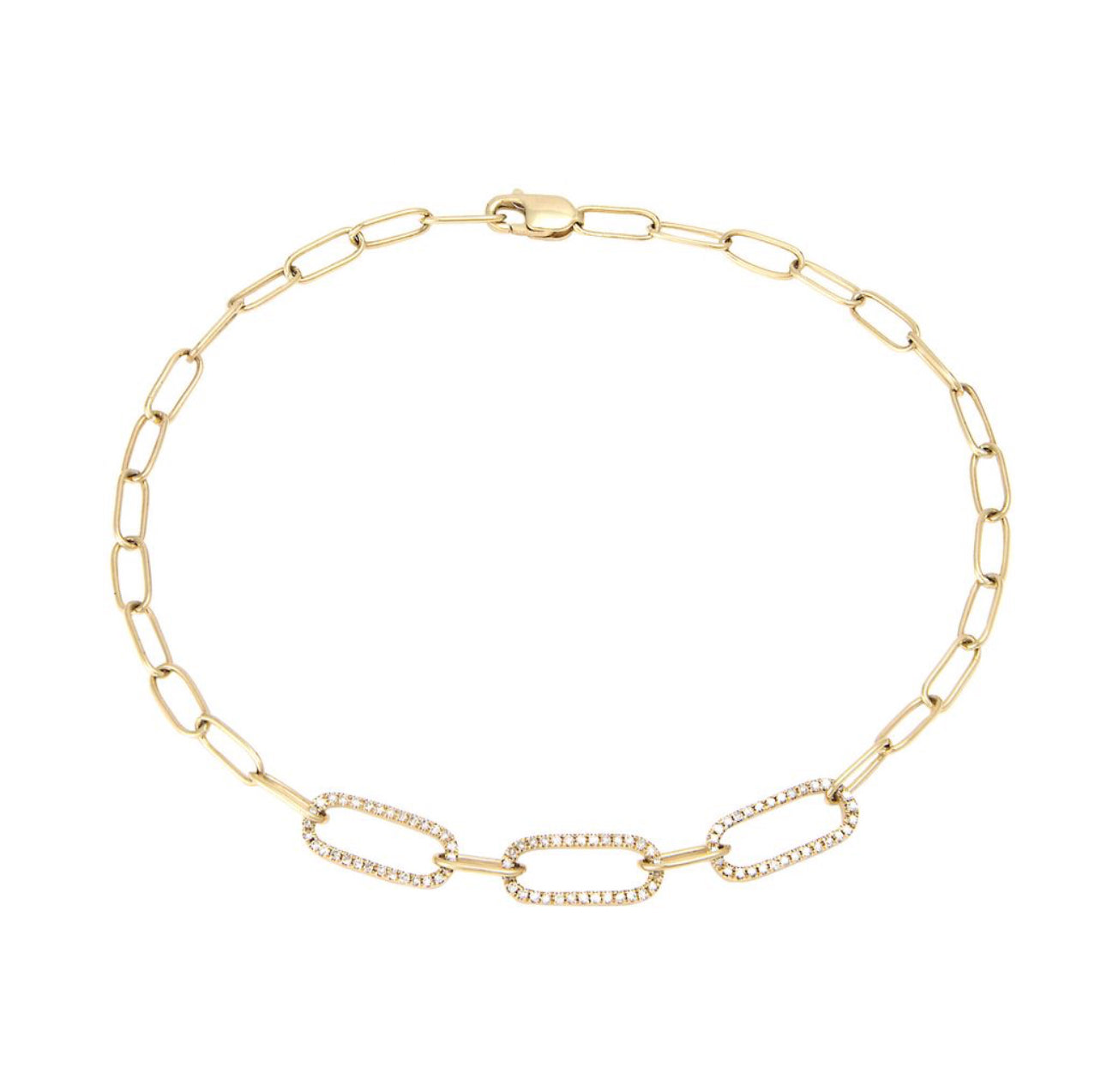 Pulsera sólida paper clip de diamantes en oro amarillo de 14 kt!!