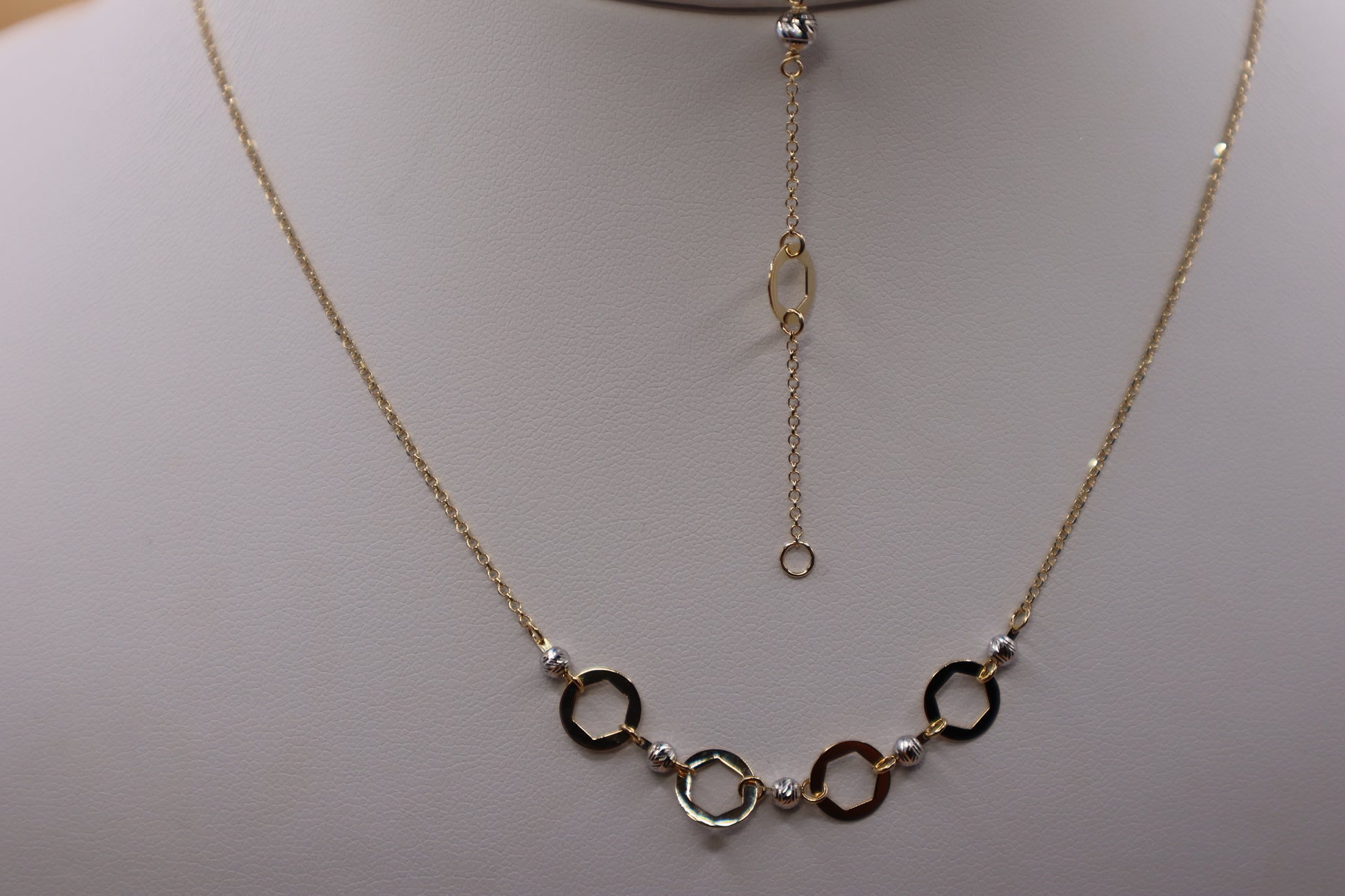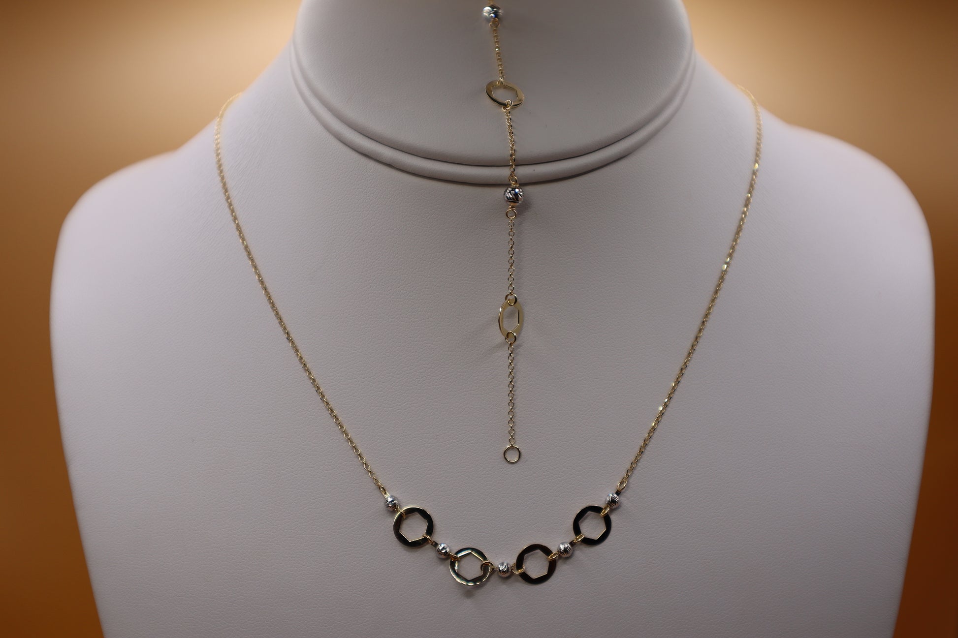 Set de cadena y pulsera con eslabón rolo en oro amarillo combinado en oro blanco en 14k!!